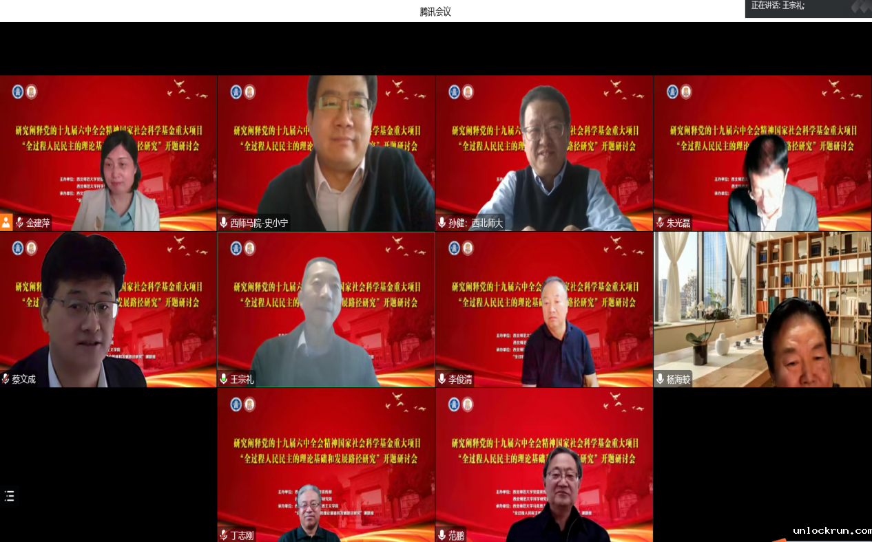 2022年12月9日,必威西汉姆联官网王宗礼教授主持的研究阐释党的十九届六中全会精神国家社科基金重大项目“全过程人民民主的理论基础和发展路径研究”开题研讨会顺利召开。该项目开题研讨会由必威西汉姆联网页党委宣传部、必威西汉姆联网页科学研究院主办,必威西汉姆联官网、“全过程人民民主的理论基础和发展路径研究”课题组承办,会议采用线上形式以主、分会场进行。